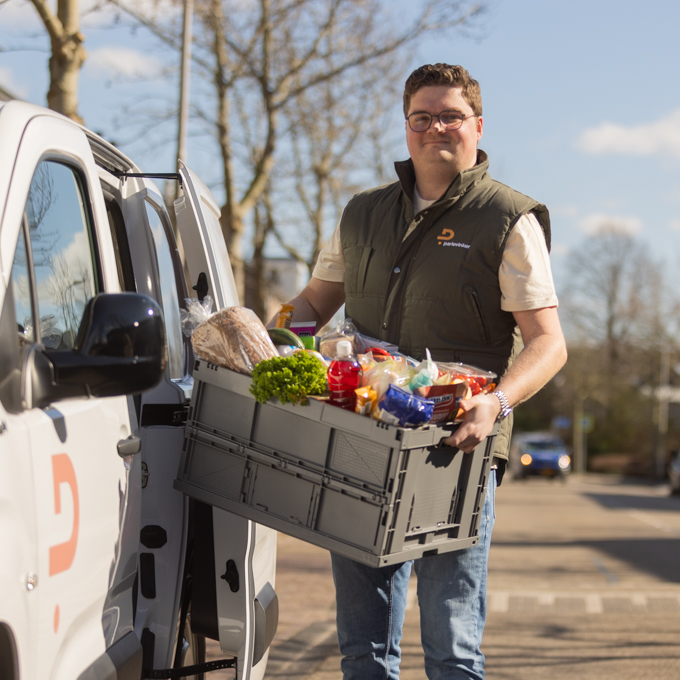 Onze bestelbus is onopvallend wit en is voorzien van de letter P van Parlevinker. Meer niet. Met onze bus bezorgen we elke vrijdagmiddag de boodschappenkratten bij onze klanten. Het tijdvak waarin we langs komen wordt met u overlegd. De inklapbare krat blijft bij u achter en geeft u de volgende keer weer mee aan de chauffeur.